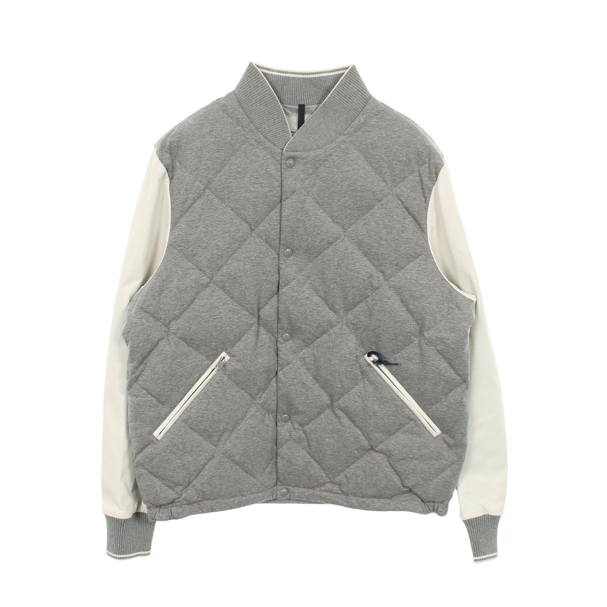 ダウンジャケット スタジャン コットン ラムレザー グレー ホワイト 切替 モンクレール