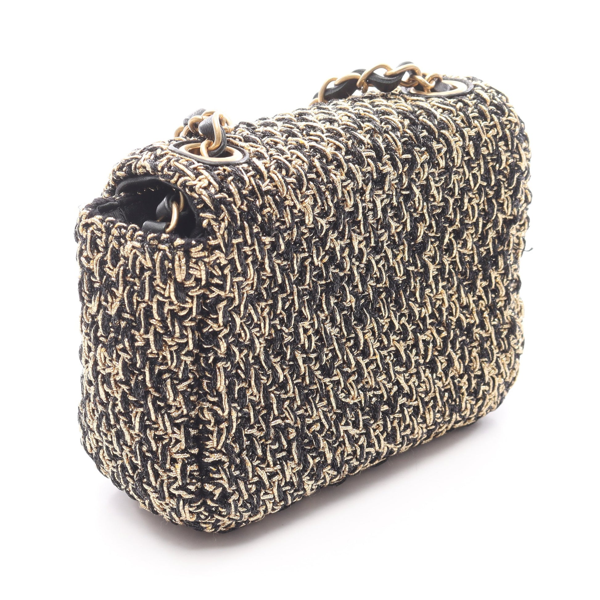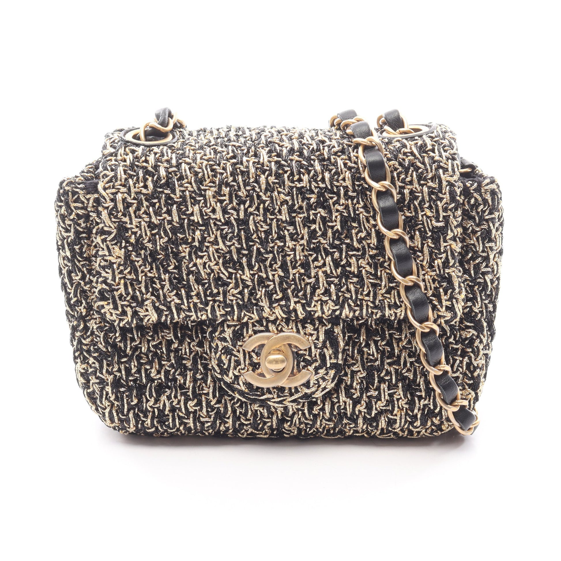 マトラッセ スモールフラップ チェーンショルダーバッグ ツイード ブラック ゴールド ゴールド金具 シャネル