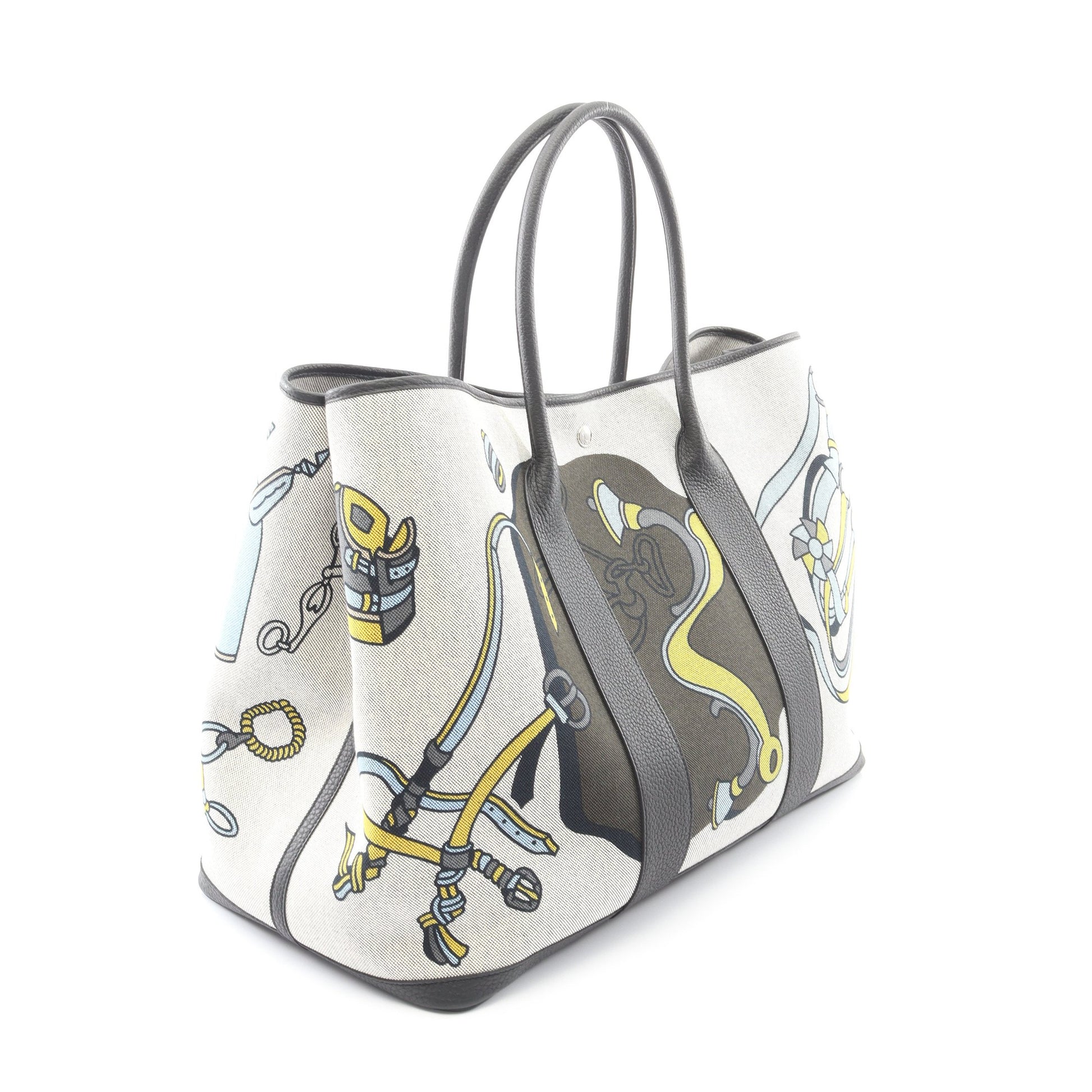 ガーデンパーティ ボヤージュ 49 エコルツ ブルーパラディ ハンドバッグ トートバッグ トワルアッシュ ネゴンダ ライトグレー ブラック マルチカラー シルバー金具 W刻印 エルメス