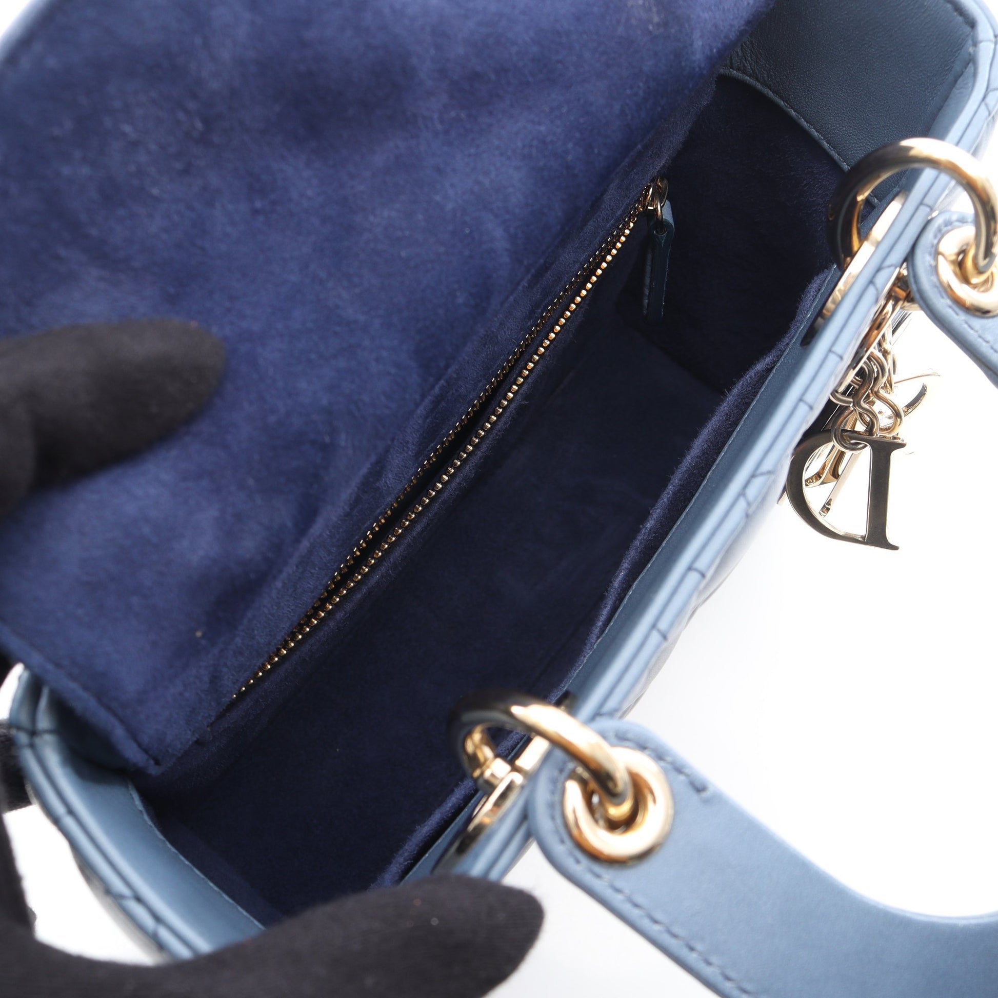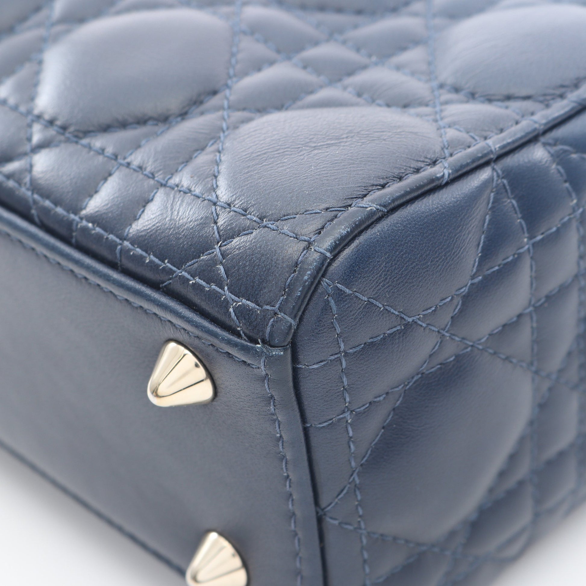 レディディオール スモール ハンドバッグ レザー ネイビー ブルー 2WAY クリスチャンディオール