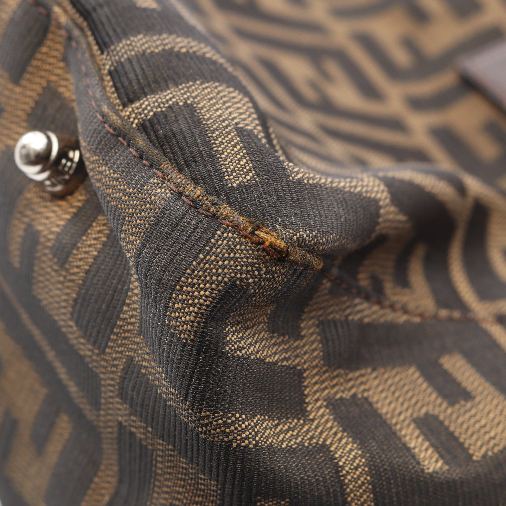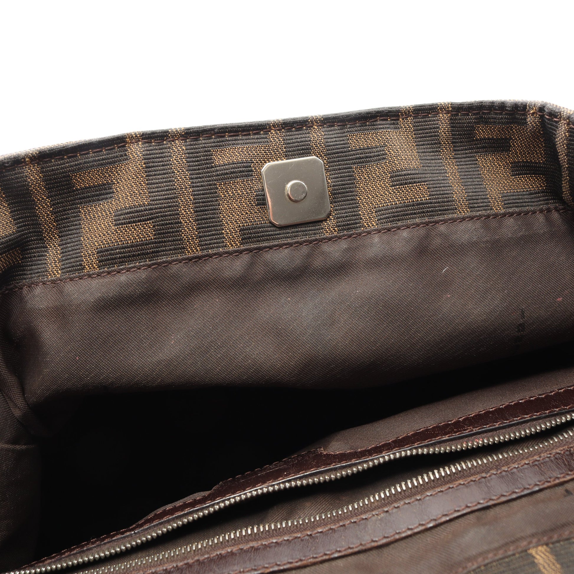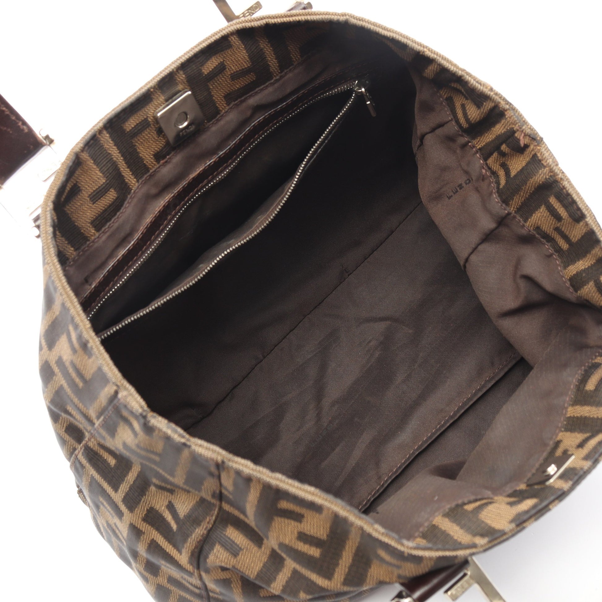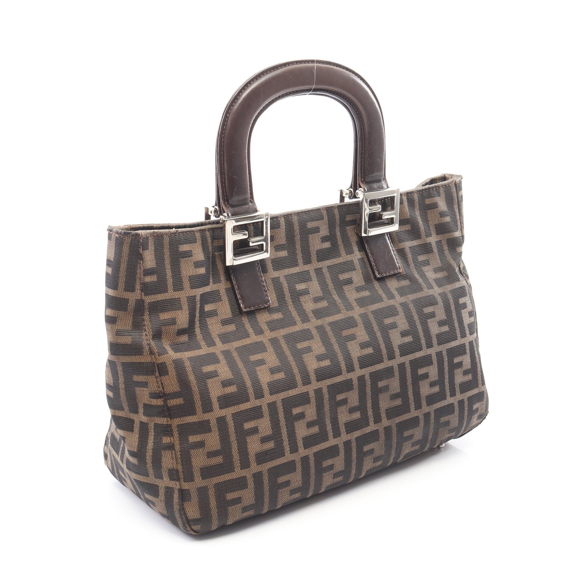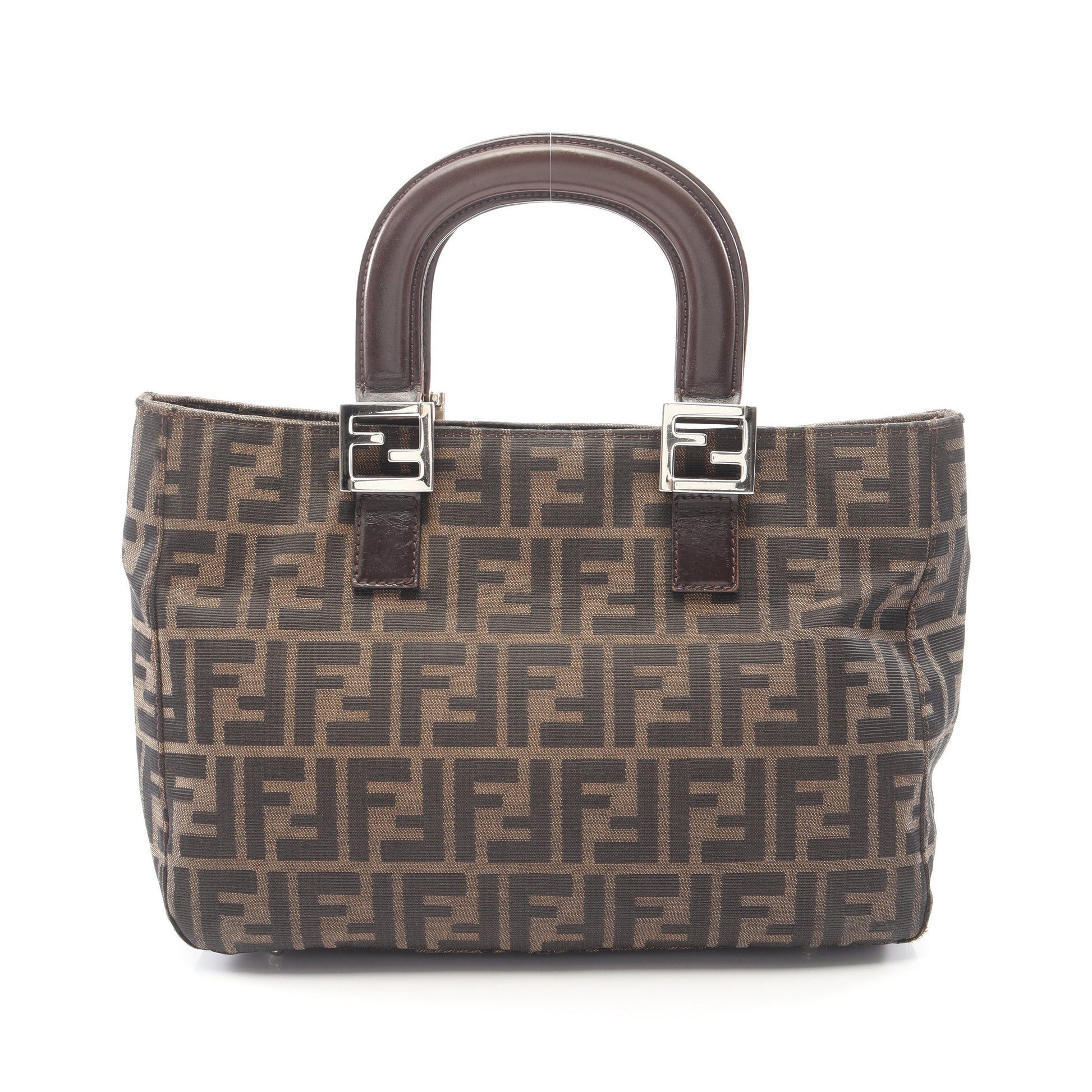 ズッカ ハンドバッグ トートバッグ キャンバス レザー ブラウン ダークブラウン フェンディ