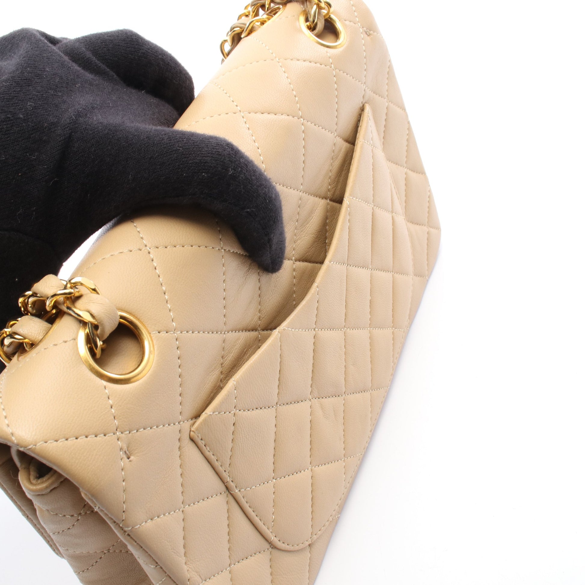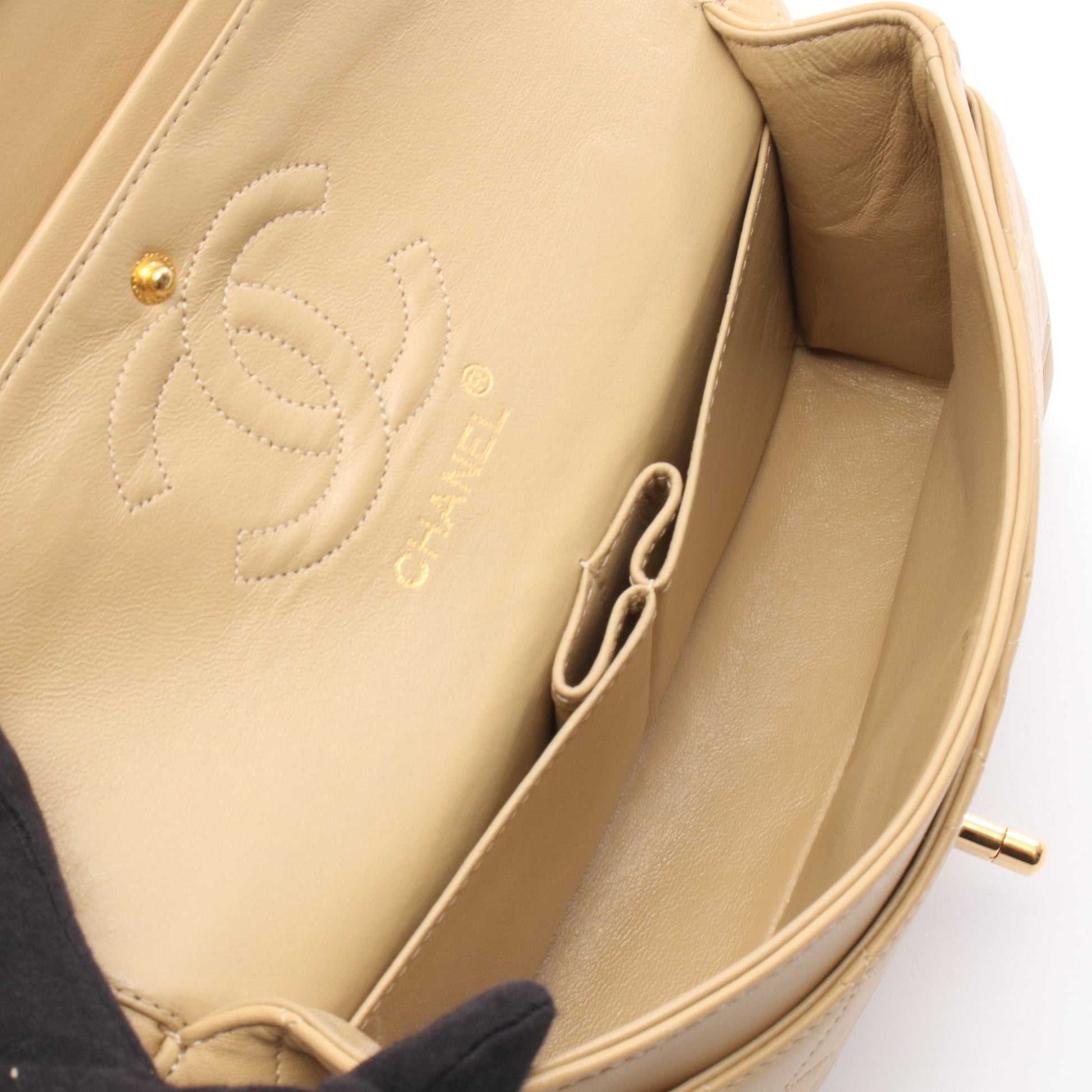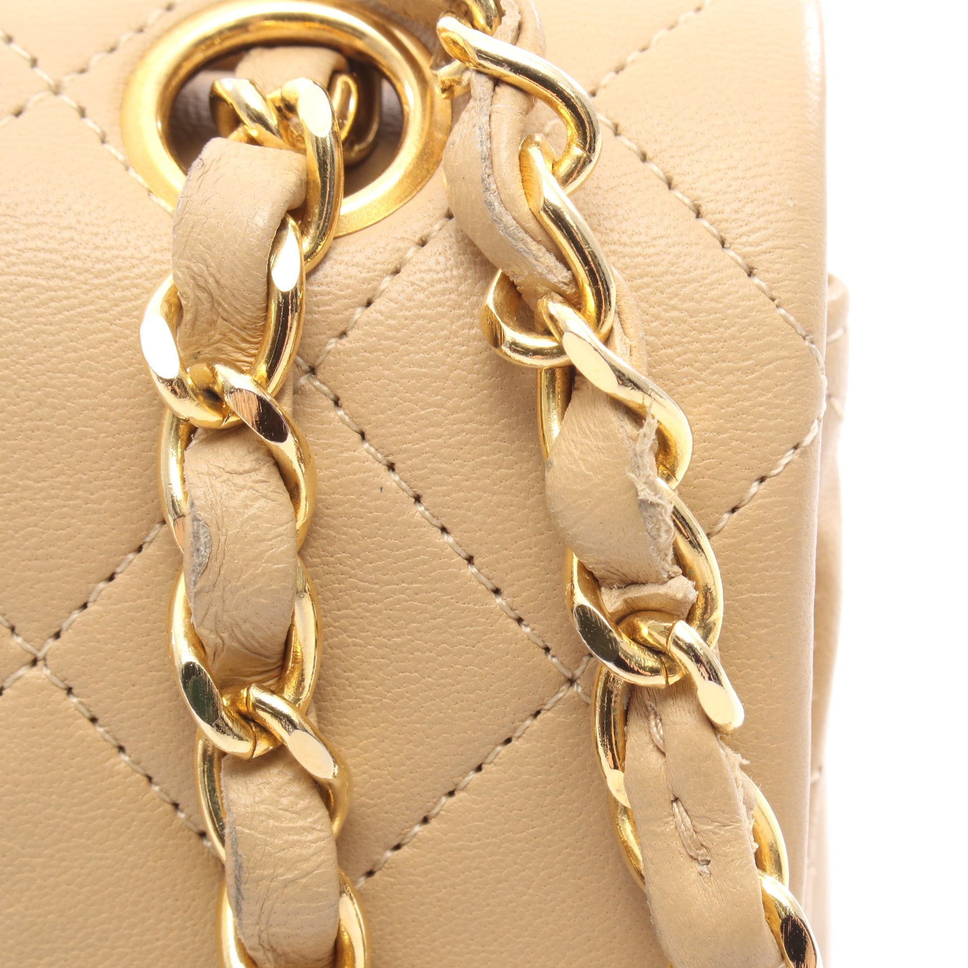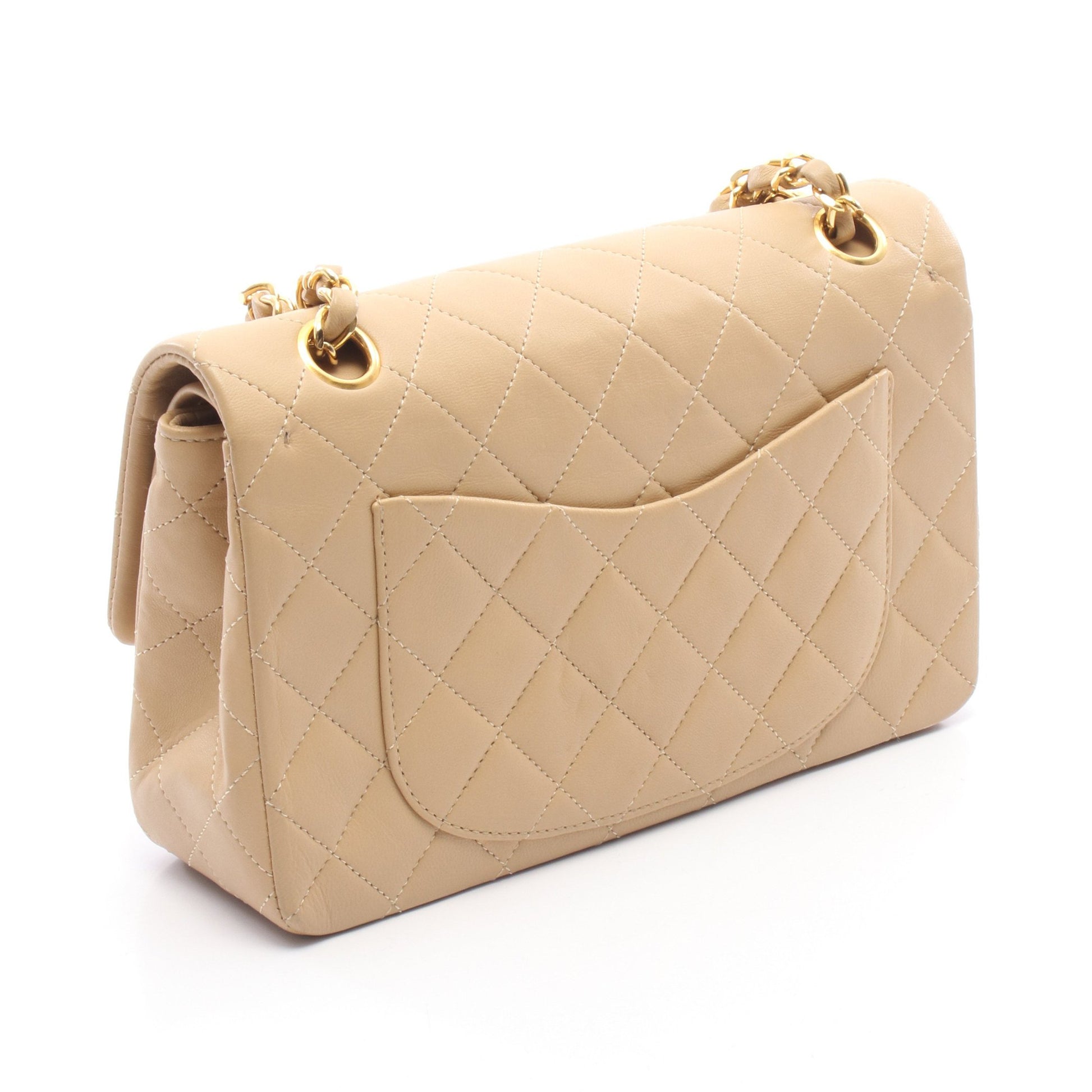 マトラッセ Wフラップ Wチェーンショルダーバッグ ラムスキン ベージュ ゴールド金具 シャネル