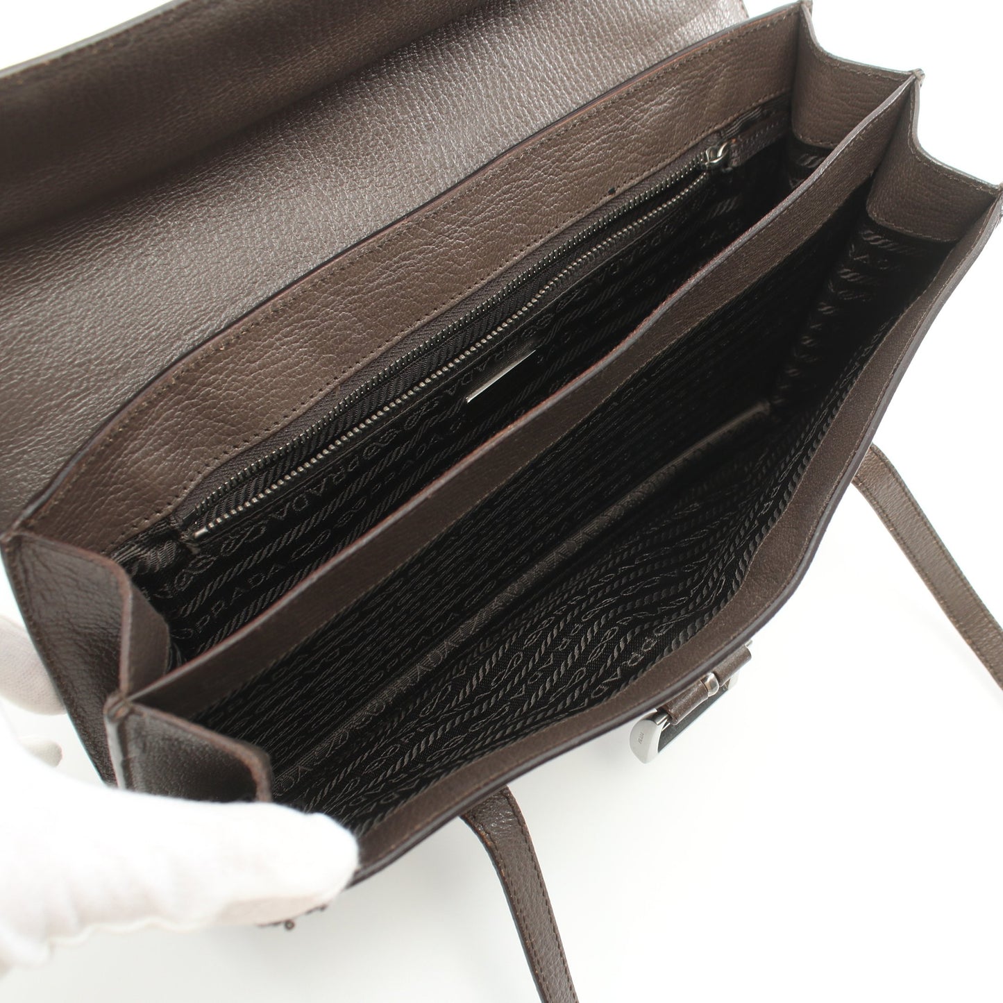 ショルダーバッグ レザー グレーブラウン プラダ