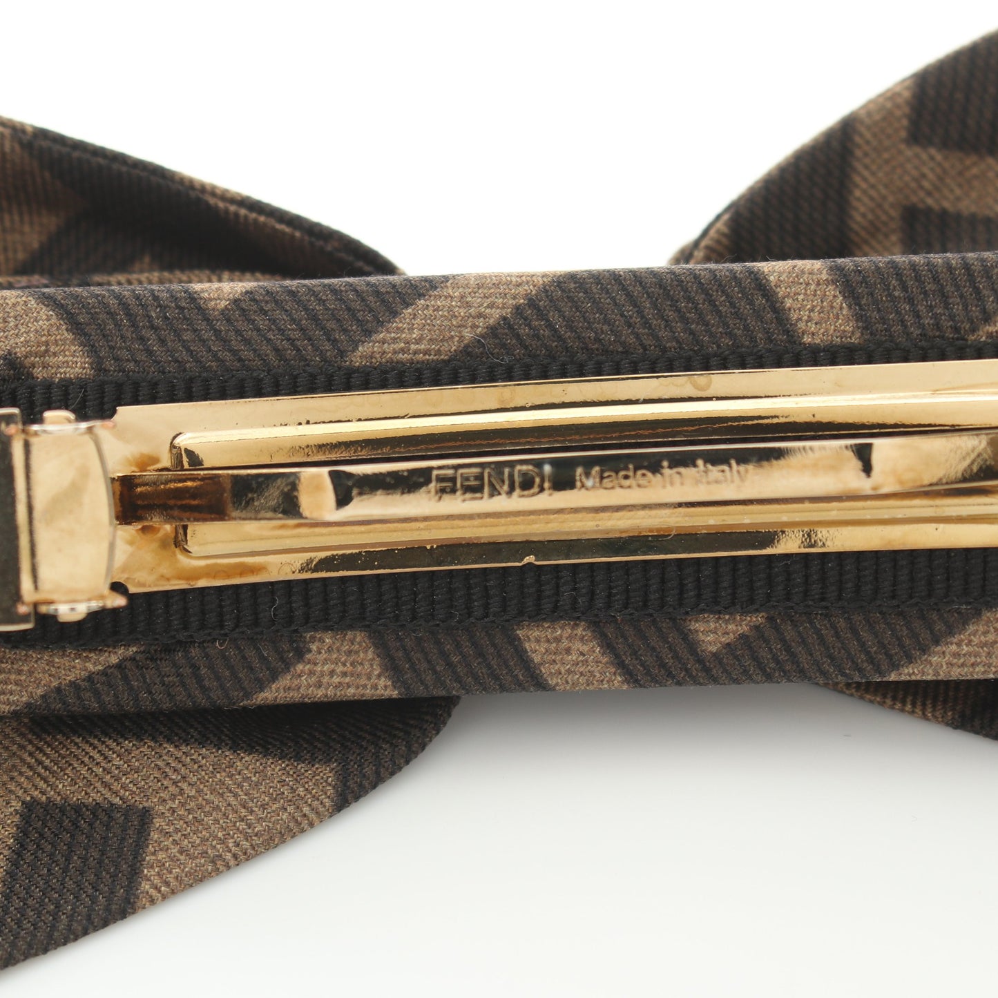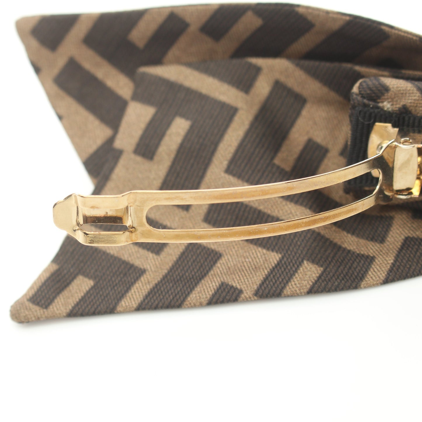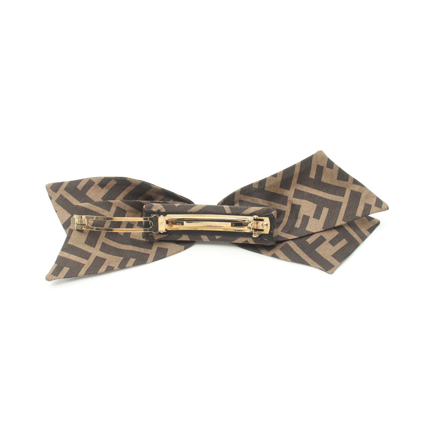 ズッカ リボン バレッタ シルク カーキブラウン ブラック フェンディ