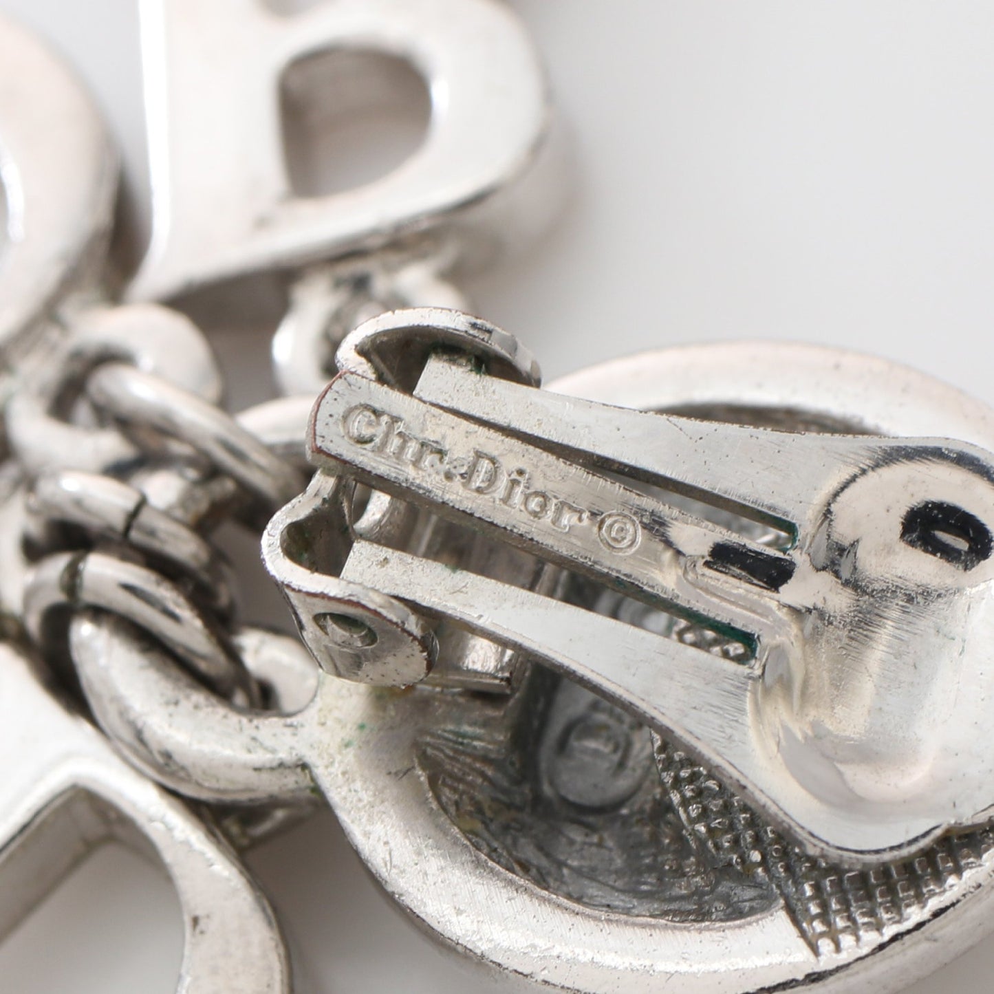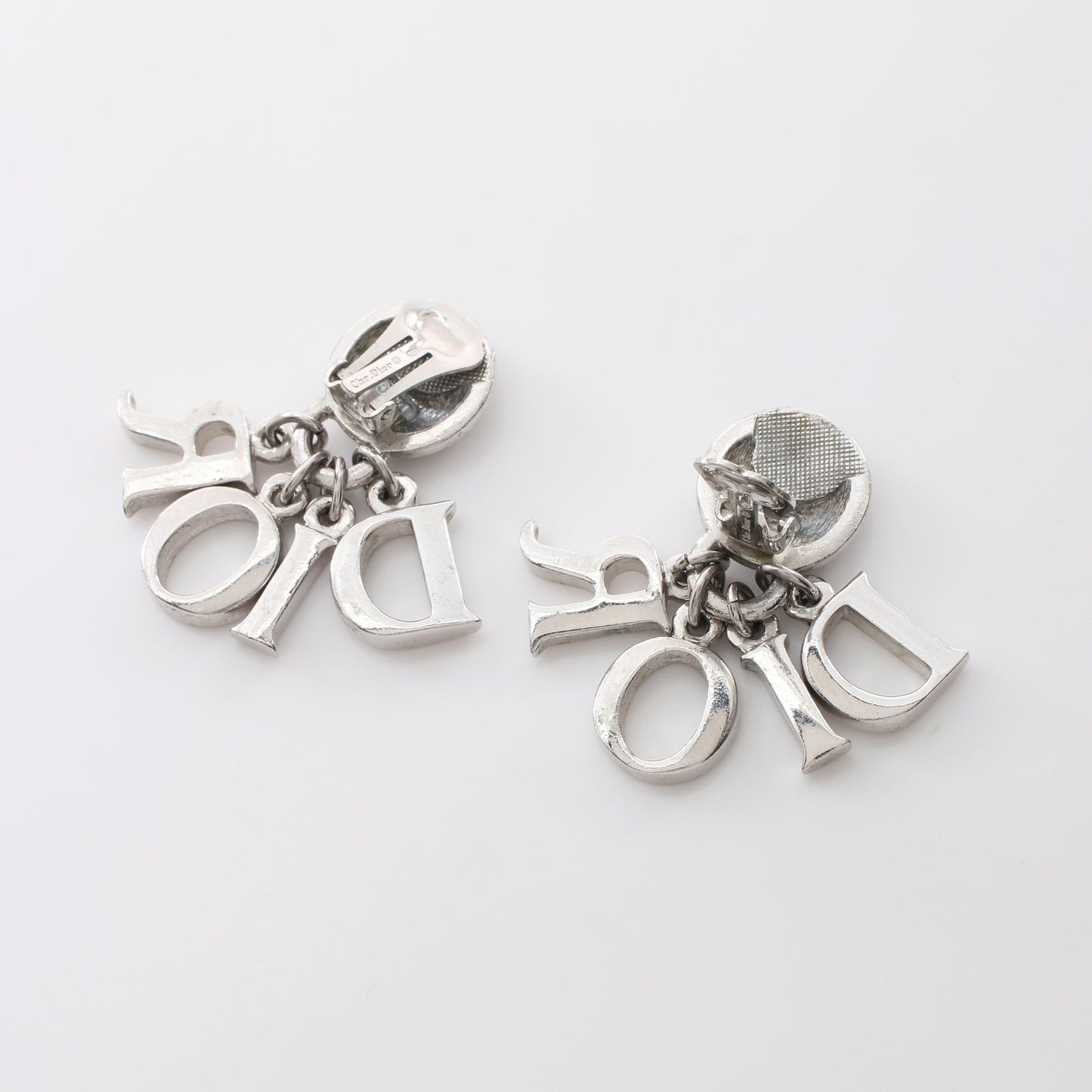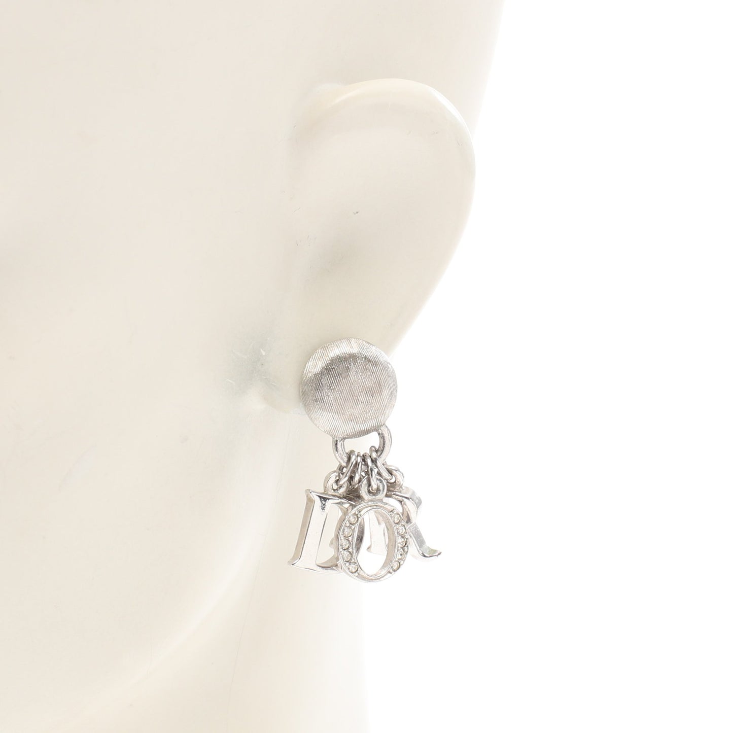 ロゴ スイング イヤリング ラインストーン シルバー クリア クリスチャンディオール