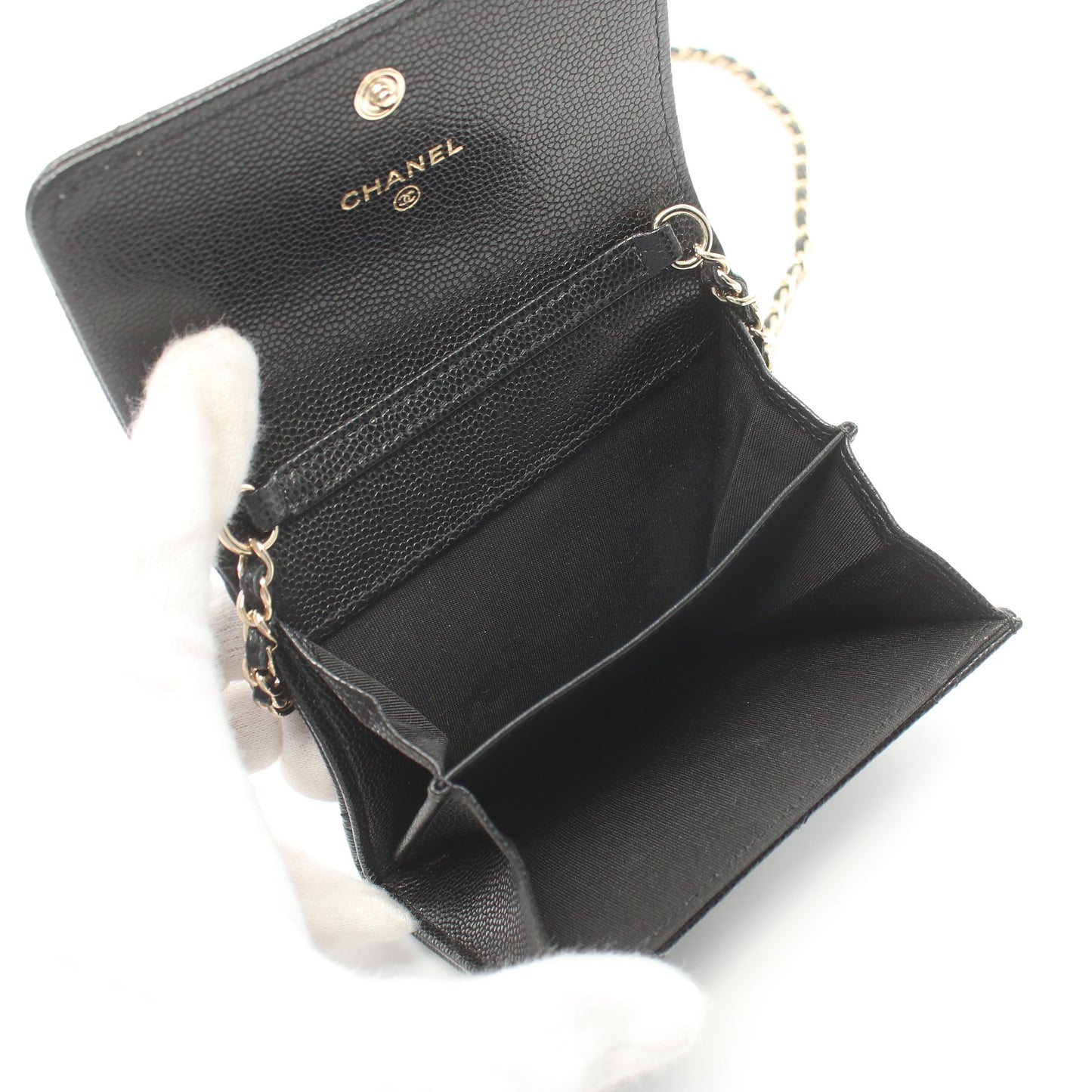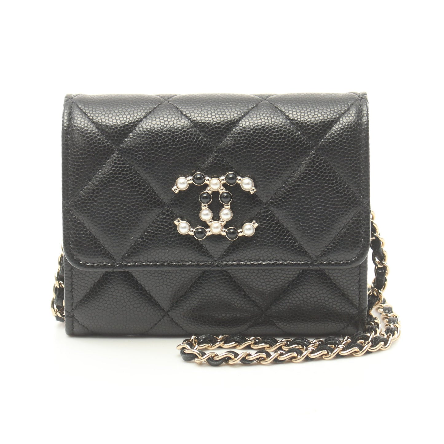 マトラッセ チェーンウォレット キャビアスキン ブラック ゴールド金具 シャネル